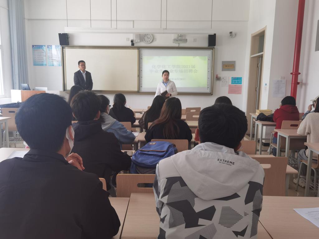 为做好2021届毕业生就业工作,4月28日下午,开云app 召开2021届毕业生专场招聘会。青海观谷生态环境科学研究院有限公司和天津友美环保科技公司来校宣讲,招聘会由院党总支副书记崔香主持。